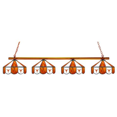 Stylish, hand-crafted stained glass Texas Longhorns 4 Light Billiard Light.